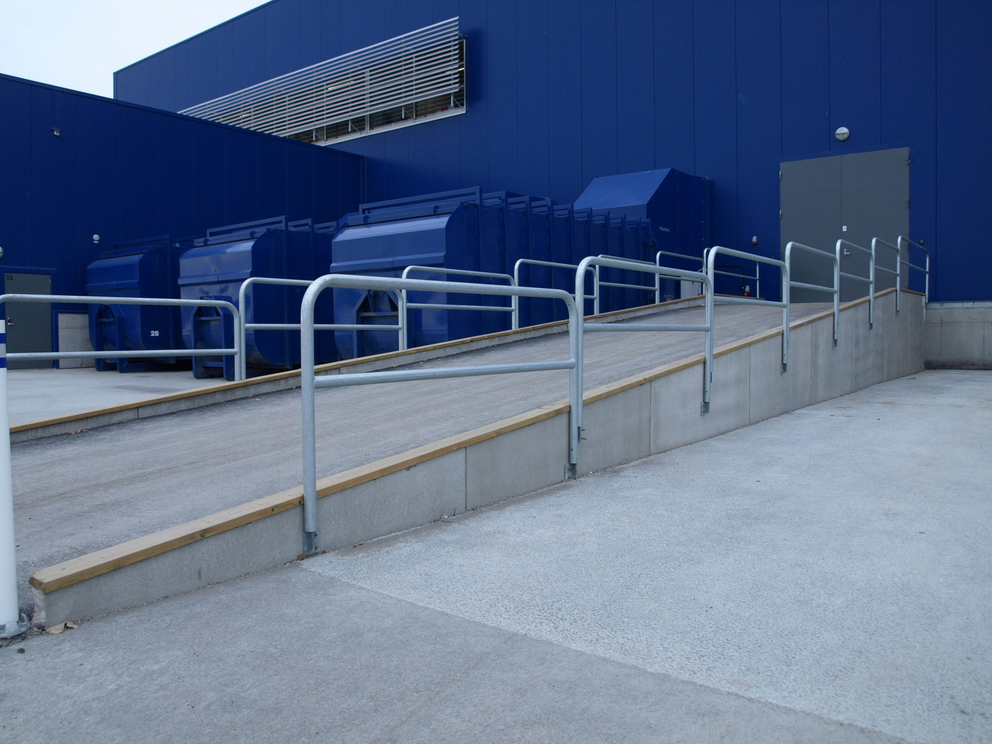 Funktionella räcken för avgränsning vid gångvägar, parkeringar och entréer.